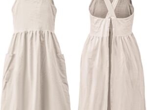 Cotton Linen Apron Cross Back Work Apron for Women with Pockets Pinafore Dress X Cross Halter Apron for Chef Gardening