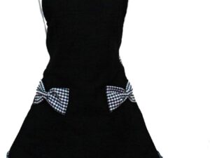 Cute Retro Lovely Vintage Ladies Kitchen Flirty Vintage Aprons for Women Girls with Pockets for Mothers Day Gift (Black)