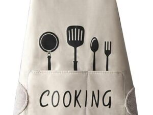 Women Kitchen Apron with Hand Wipe Pockets,Big Pocket,Hand-wiping, Waterproof for Cooking Baking