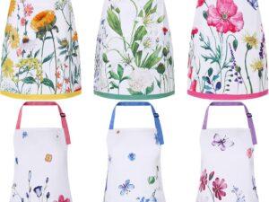6 Pcs Kitchen Aprons with Pockets Women Spring Summer Holiday Aprons