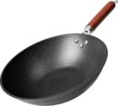 - Iron Material–The material of this wok is iron. It is healthy cookware, and eco-friendly. It is iron wok, iron pan, iron cookware, iron skillet, stir fying pan, stir egg pan, stir skillet, large roasting pan, steel pan, deep fryer pot, and this is making stir fry easy.