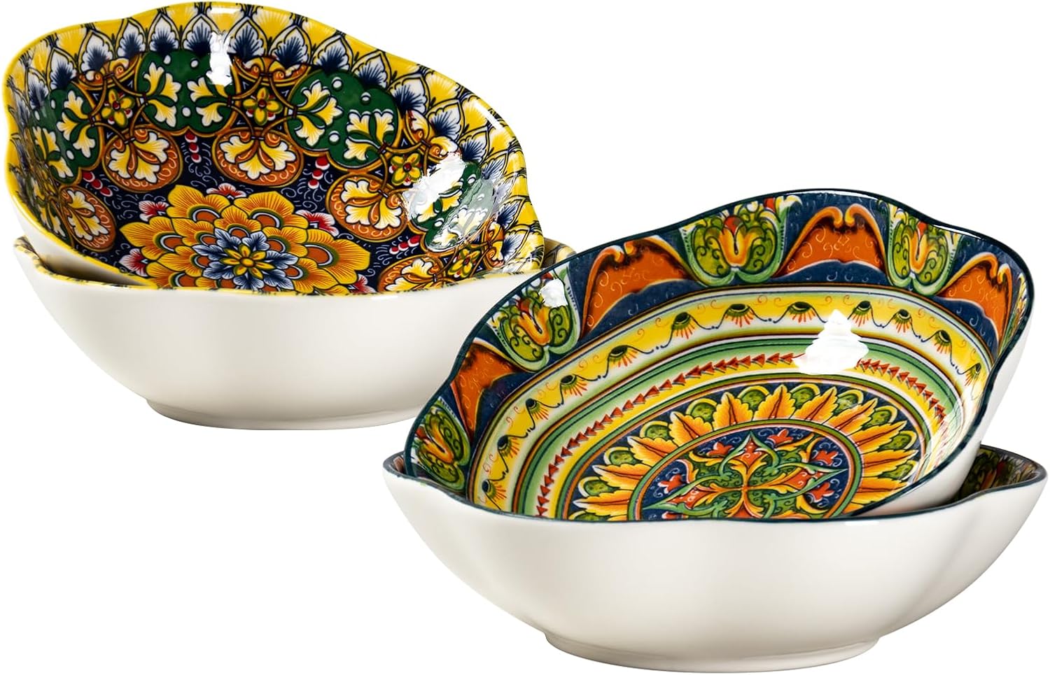 - Style and Design – Different from ordinary bowls, has more gorgeous colors, get rid of traditional single colors. Vibrant colors and floral patterns create a unique bohemian style, it brights up your kitchen for sure.