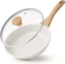 • EASE OF CLEANING – Its slippery, nonstick surface and no rivets design make the of the ceramic non toxic frying pan skillet with lid easy to clean in seconds with a towel, soap and warm water. Dishwasher safe, but recommend hand washing to extend its lifespan.