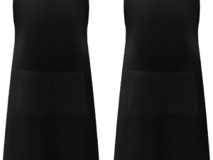 2 Pack Adjustable Bib Apron Waterdrop Resistant with 2 Pockets Cooking Kitchen Aprons for Women Men Chef, Black