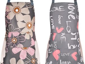 2 Pack Floral Aprons with Pocket Blooming Womens Waterproof Adjustable Cooking Aprons Kitchen Gardening Salon