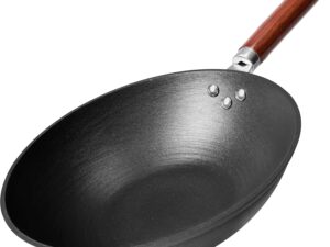 21st Wok, Stir Fry Pan, Wooden Handle, 11 Inch, Lightweight Cast Iron, chef’s pan, pre-seasoned nonstick, for Chinese Japanese and other cooking
